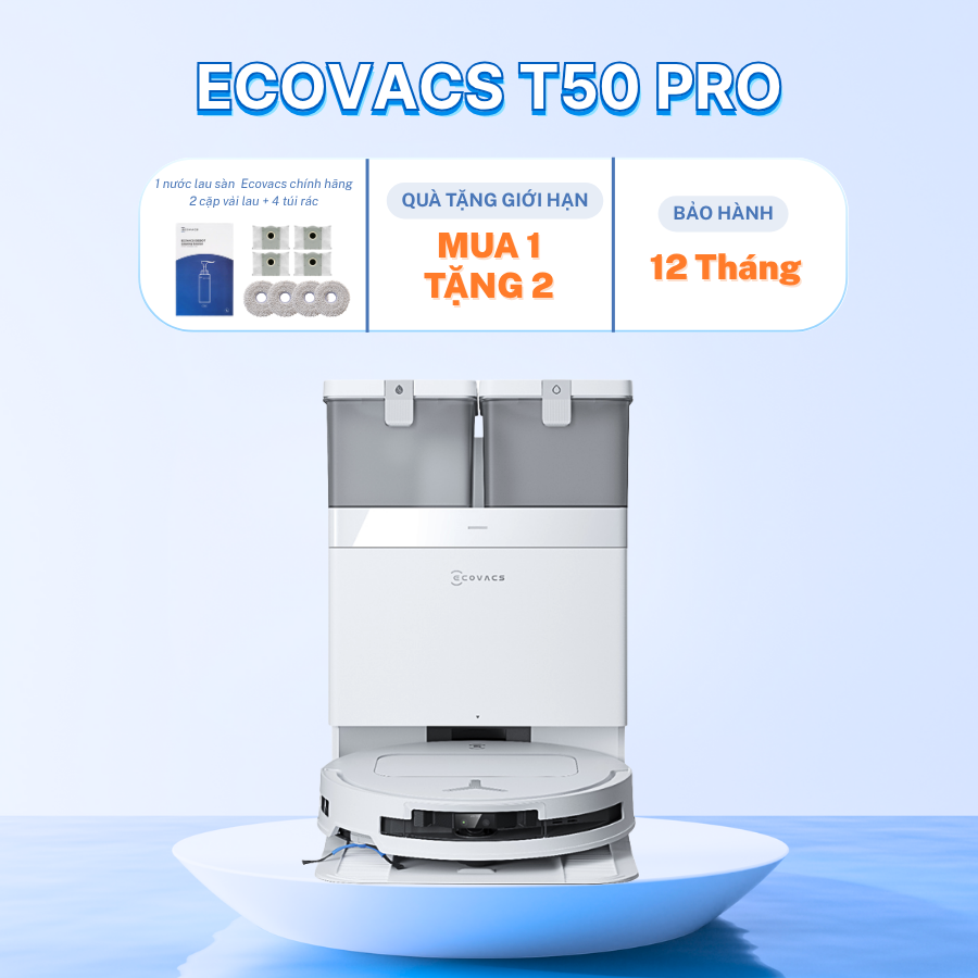 - Tặng 1 bộ phụ kiện Ecovacs T50 Pro chính hãng