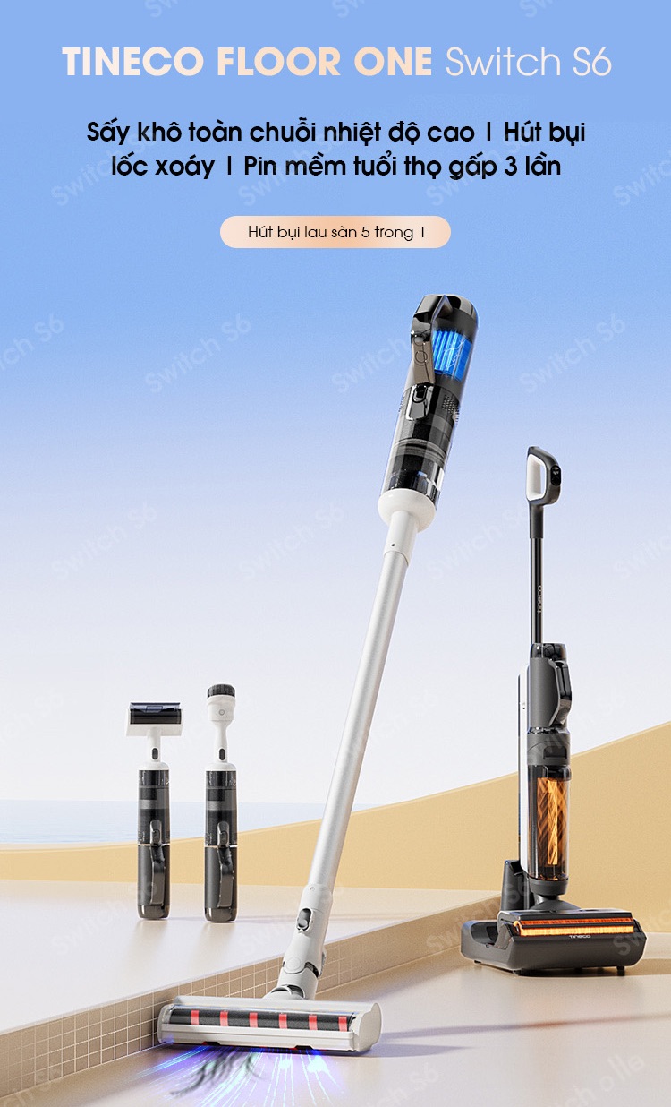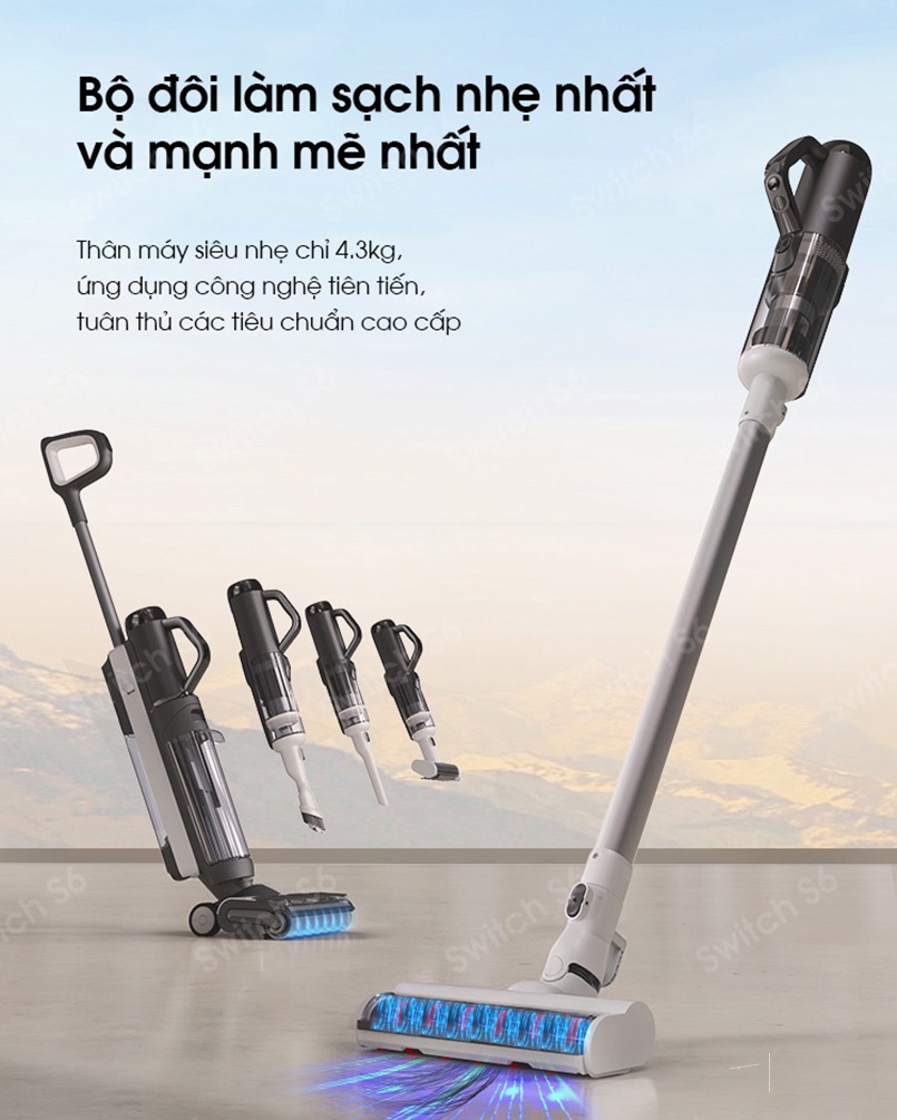 Sở hữu thân máy siêu nhẹ, chỉ 4.3kg, và được tích hợp các công nghệ tiên tiến, Tineco Floor One Switch S6 mang lại hiệu suất cao nhất. Máy có thể đáp ứng mọi nhu cầu làm sạch, từ việc rửa sàn, khử trùng, khử khuẩn, vừa hút vừa lau hay thậm chí là loại bỏ các dạng bụi mịn, mạt bụi một cách toàn diện.