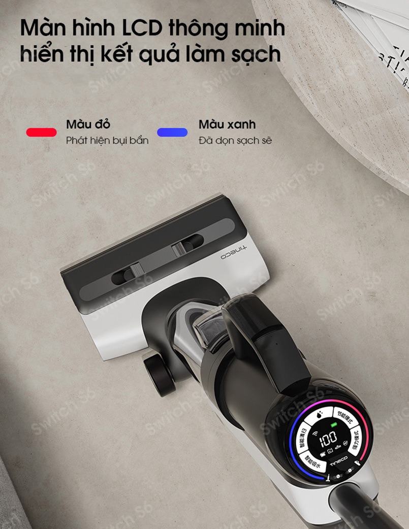 Kết quả của quá trình làm sạch được phản hồi lại qua các chỉ báo màu đỏ và xanh lam được hiển thị trên màn hình Led của Tineco Floor One Switch S6. Điều này giúp người dùng theo dõi hiệu quả làm sạch và đảm bảo công việc làm sạch đạt được kết quả mong muốn.