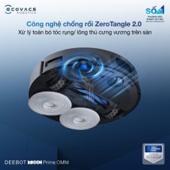 Công nghệ chống rối ZeroTangle 2.0 của Ecovacs Deebot T30C Prime Omni mang đến khả năng xử lý tóc hiệu quả trong suốt quá trình làm sạch. Hệ thống kết hợp chổi cạnh ARClean với thiết kế tinh gọn giúp giảm điểm tiếp xúc, hạn chế tóc xoắn rối, đồng thời tận dụng lực ly tâm để đẩy tóc trực tiếp vào cửa hút. Bên cạnh đó, chổi chính định hướng Cyclone với cấu trúc 3V (nâng – gom – gỡ) hoạt động theo trình tự tối ưu, giúp loại bỏ hiệu quả cả tóc dài và lông thú cưng.