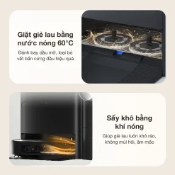 Hiện nay, công nghệ làm sạch khăn bằng nước nóng đang được người dùng cực kỳ ưa chuộng. Thấu hiểu được tâm lý người dùng, Ecovacs X2 Omni Combo mang đến giải pháp làm sạch sâu với công nghệ giặt khăn lau bằng nước nóng 60°C. Công nghệ này chủ yếu giúp đánh bay dầu mỡ và bụi bẩn hiệu quả, tránh được vi khuẩn và mùi ẩm mốc, bảo vệ sức khoẻ cho cả gia đình. Nhờ có “chuyển động chà” đã giúp loại bỏ được đa số bụi bẩn và vết bẩn cứng đầu, tăng tỷ lệ giặt sạch vải lau của X2 Omni Combo lên tới 96%.